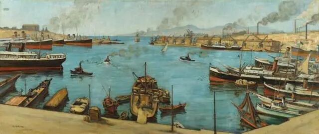 《比雷埃夫斯》比雷埃夫斯是希腊最大的港口,也是地中海最大的港口之一,在希腊的传奇历史和当代生活中发挥着重要作用。这幅海港风景画捕捉了比雷埃夫斯港日常活动中的宁静一刻。画家尝试通过叙述的冲击力和大胆用色,创作出一幅具有野兽派风格的绘画。