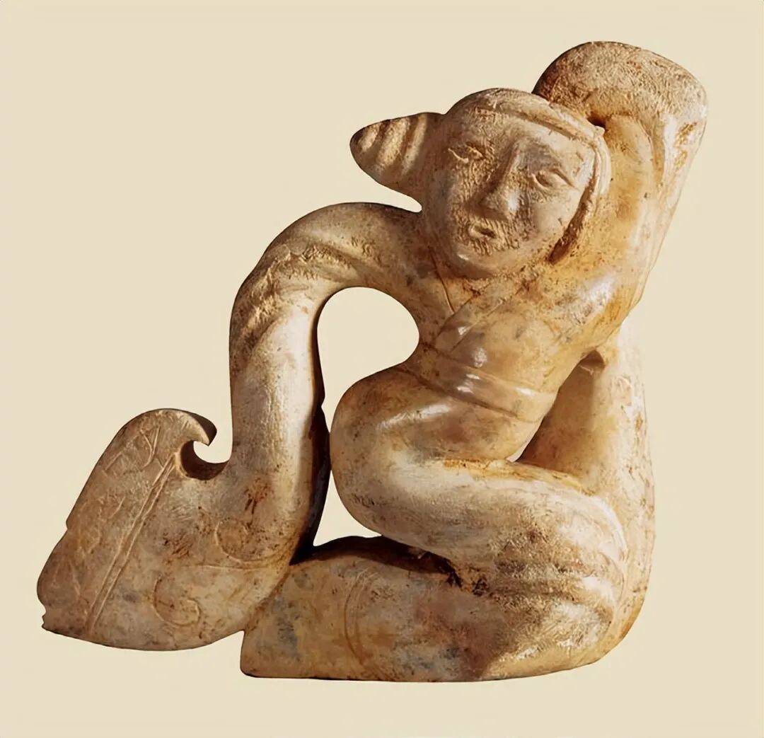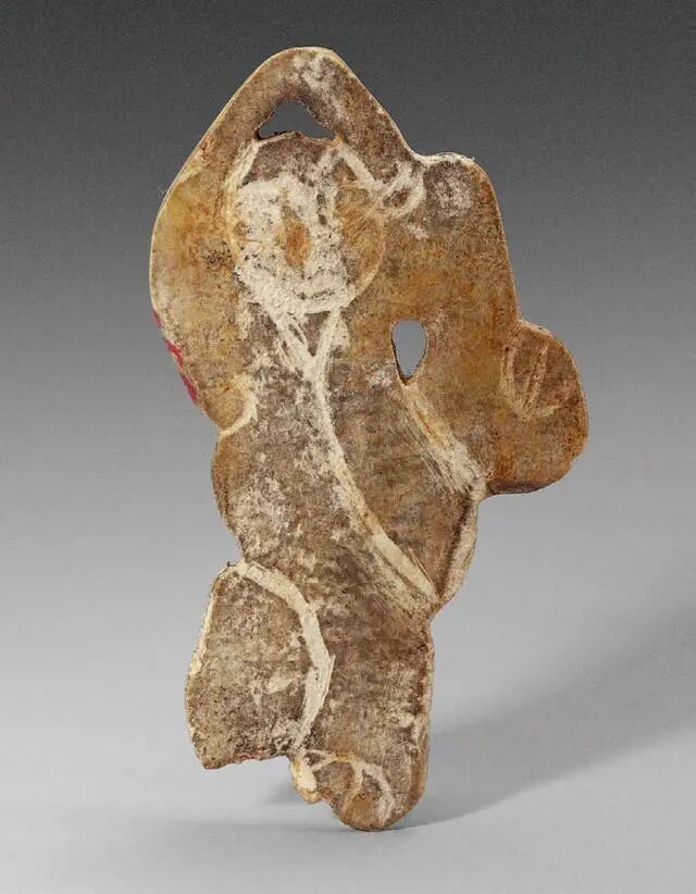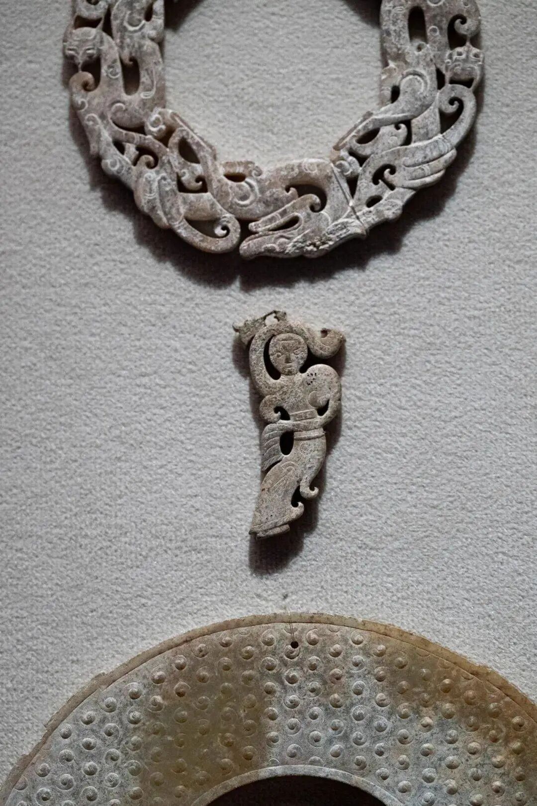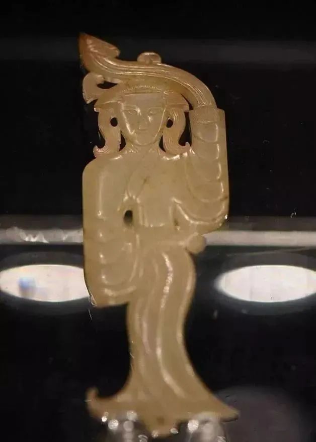南昌西汉海昏侯刘贺墓出土的战国玉舞人,右袖下摆处有残缺。
