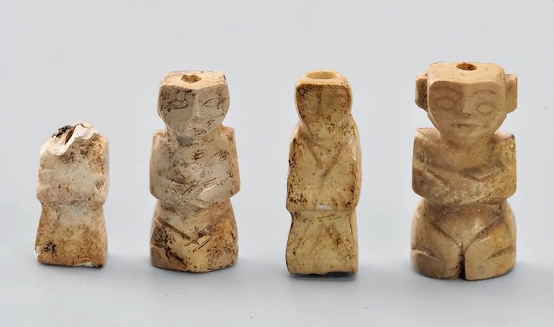 与此玉人相似的还有主棺室墓主人组玉佩上的4件小玉人构件,它们大同小异,都是平头、圆脸,双手合拢于胸前,似作垂拱交襟状的小人造型,呈跪坐的姿势。在礼仪规范、等级制度森严的汉朝,站有站相、坐有坐姿是必备的。双膝在前,脚底踩着地面坐在地上,是现代人常见的坐姿。汉代人的标准坐姿是两膝着地,小腿贴地,臀部坐在小腿及脚跟上,称之为跽坐,类似于我们现在所说的跪坐方式。这4件小玉人行汉人的坐姿礼仪。![]()