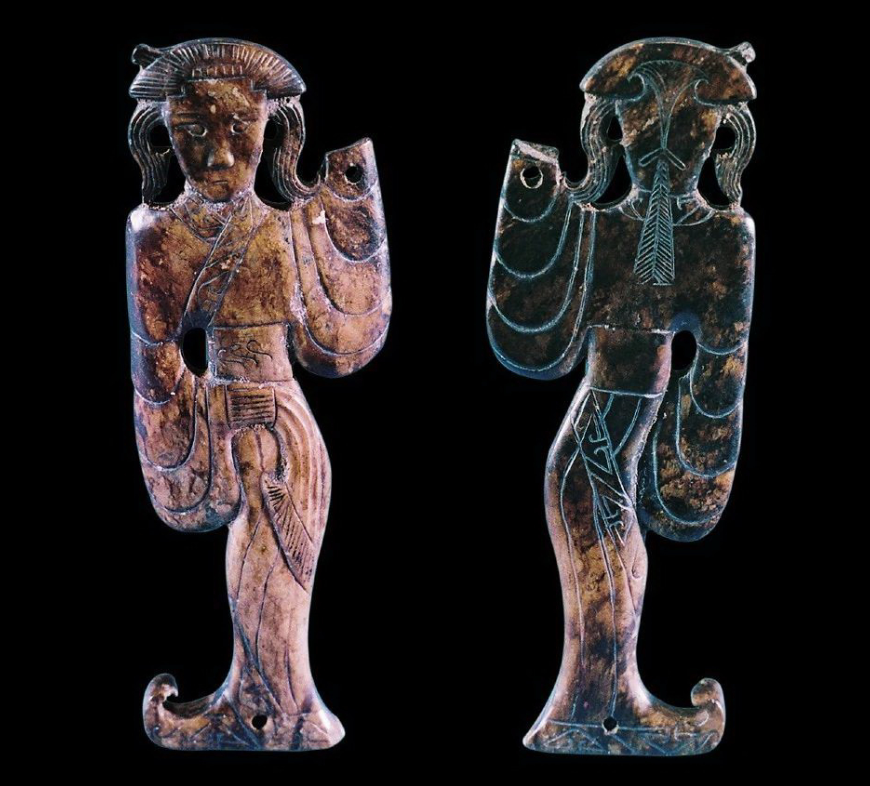 洛阳金村东周玉舞人是现存出土最早的玉舞人题材玉雕,现藏于美国弗里尔美术馆。