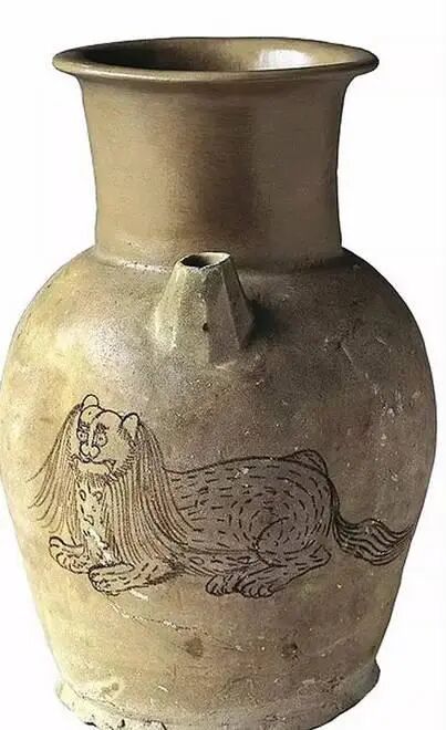 青釉褐彩卧狮瓷壶 高22.3底径11.2cm