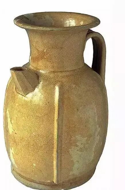模印贴花实际上是一种浅浮雕装饰,它在器物装饰上起着画龙点睛的作用,长沙窑窑址中出土了不少贴花的印模,模印贴花一般与青釉褐斑相配,除此之外,就是单色青釉,不见其它彩绘,这可能是为了更加突出主题装饰,贴花内容有舞蹈人物、植物花卉、家禽动物等,1973年衡阳水井出土的青釉褐斑舞蹈人物壶,器形小巧圆浑,八方短流,弓形鋬,两侧有双系,腹部圆鼓,双系和壶流下共有三块贴花,其右侧为单层方形宝塔,左侧为立狮,壶流下的主纹为一赤裸上身的力士,披巾缠身,右手上举伸二指,左手持一柄法器,右足单立于蒲团之上,左足弯曲作舞蹈状。