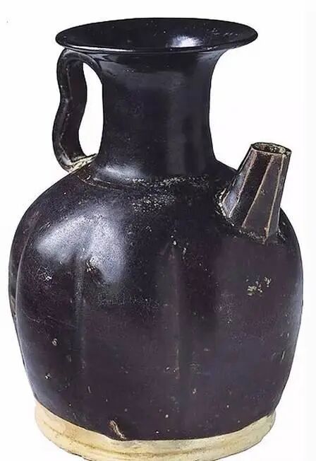 黑釉瓜棱形瓷壶 高17.7 口径8.5 底径11cm