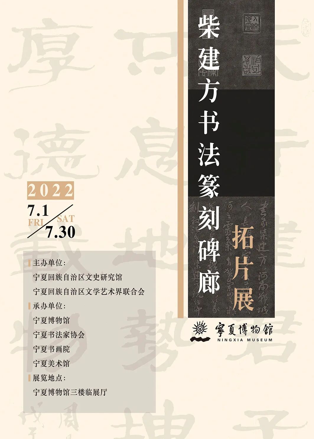 展览时间:2022年5月18日—2022年8月1日展览展出西安相家巷遗址出土的珍品封泥86枚,展览从“统一的秦国”“严谨的秦国”“高效的秦国”“艺术的秦国”四个单元,透过封泥去追寻秦时人物、城市、遗迹与故事。展览时间:2022年5月18日—2022年9月5日艺疫——纪念毛泽东同志在延安文艺座谈会上的讲话发表80周年书画篆刻作品展展览时间:2022年5月18日—2022年7月18日本次展览精选柴建方书法碑廊拓片作品59幅,祝贺书法作品9幅,展现了作者对艺术的孜孜追求和丰硕成果,表达了文艺赤子爱党爱国爱人民的真挚情怀。展览时间:2022年7月1日—2022年7月30日万象涵容文创展