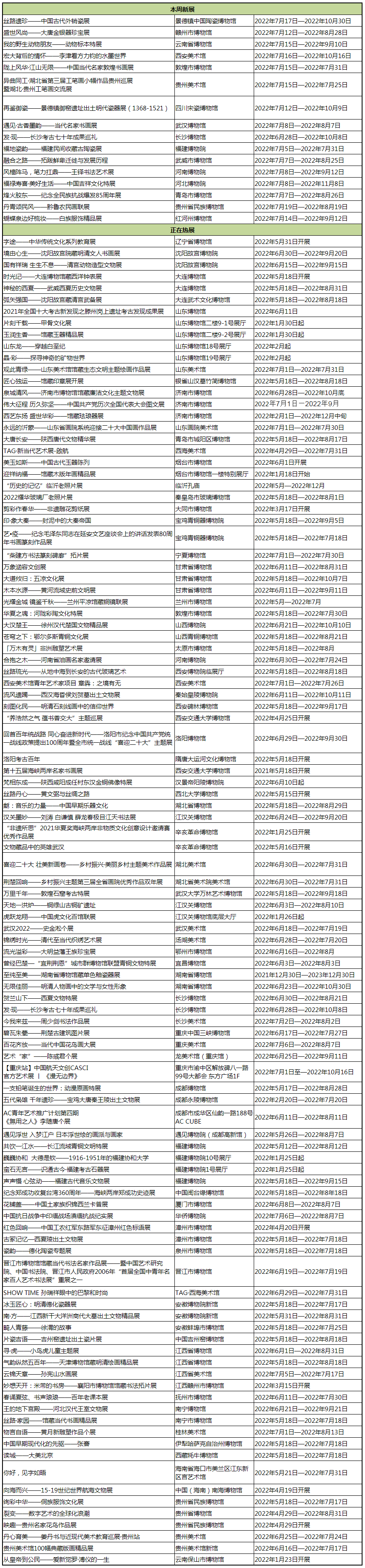 展览荟萃孙建林、李永生、蔺玉祯、冯克永、毛增林、霍新光、书超、赵杰、郑丁豪九位当代书画名家的70多幅书画精品。本次展览汇集了中国国家博物馆、中国社科院考古研究所、湖南博物院、湖南省文物考古研究院及全市数家文博单位的馆藏文物与各类考古资料,总数近400件(套)。展览时间:2022年6月28日—2022年10月8日福地瓷韵——福建民间收藏古陶瓷展