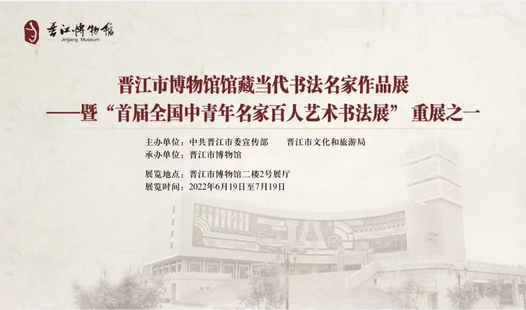 据不完全统计,红军进漳期间,在漳州地区有红军标语约8处138条。让我们走进展览,现场感受丰富多彩的标语和历史文物,感受红军进漳的伟大胜利和历史荣光。展览时间:2022年5月18日—2022年7月18日展览时间:2022年5月18日—2022年7月18日晋江市博物馆馆藏当代书法名家作品展——暨中国艺术研究院、中国书法院、晋江市人民政府2006年“首届全国中青年名家百人艺术书法展”重展之一
