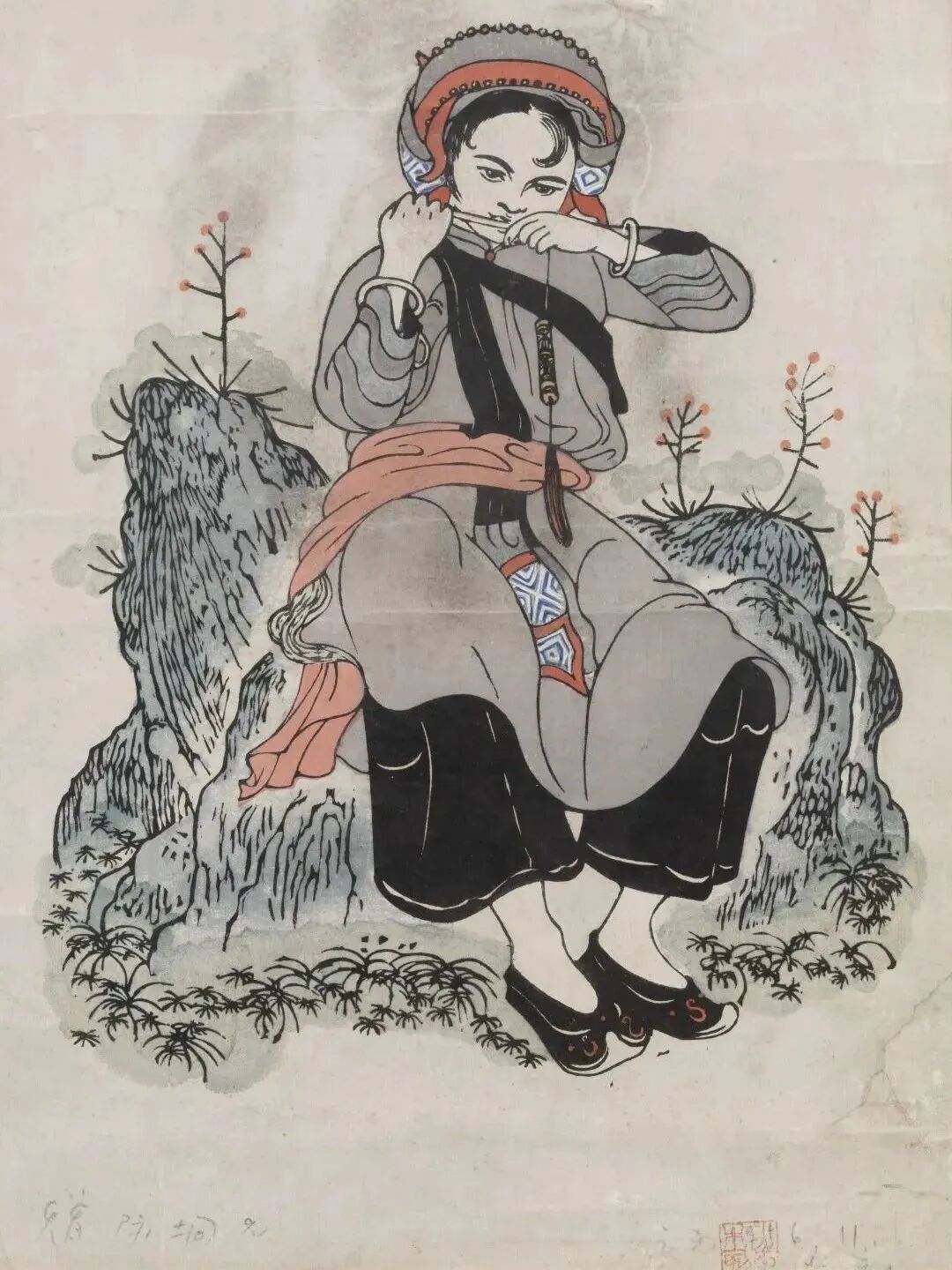 在荣宝斋学习之后,1953年,黄永玉先生来到云南撒尼族地区写生。1955年,他以撒尼族叙事长诗“阿诗玛”为主题创作了版画《阿诗玛》系列。