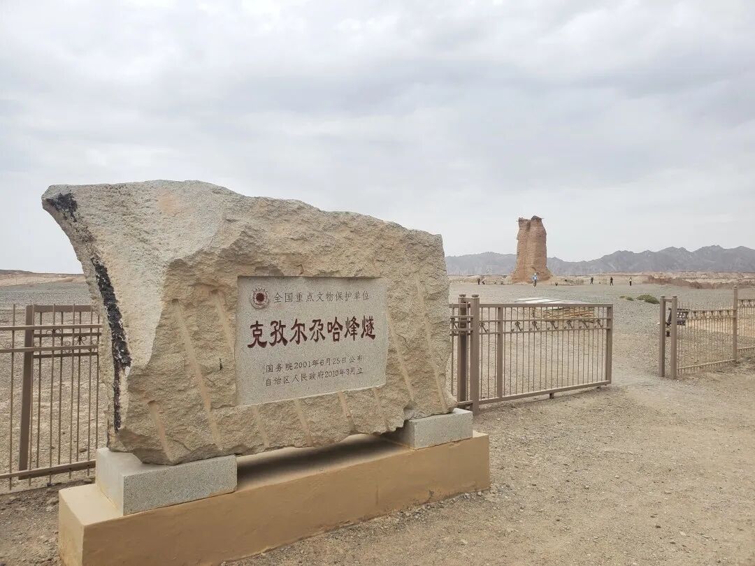 克孜尔尕哈烽燧始建于汉宣帝年间,即西域都护府移设乌垒之后,是汉代的军事设施。是新疆现存历史最悠久、保存最完好的一座夯土建筑的烽燧遗址。