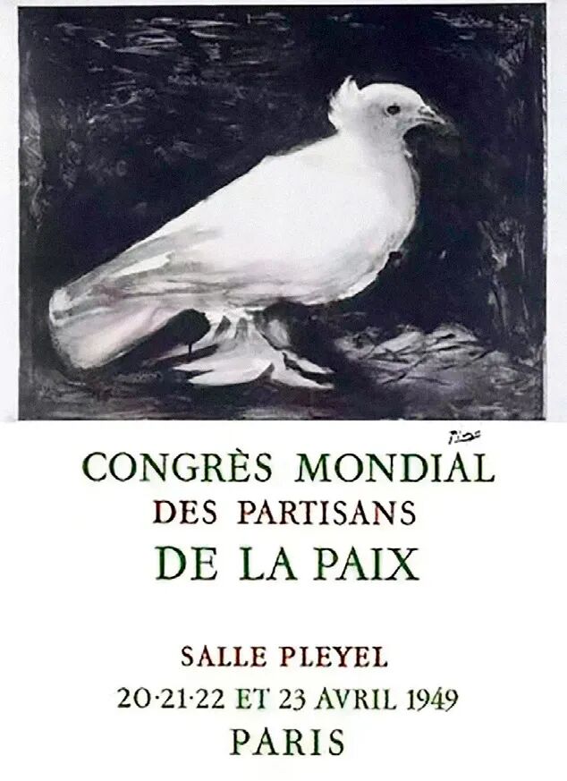 1949年1月,毕加索为在巴黎召开的世界和平大会制作了一幅石版画,名为《和平鸽》。大会召开时,这只鸽子成了和平大会的标志,出现在巴黎的街头巷尾。