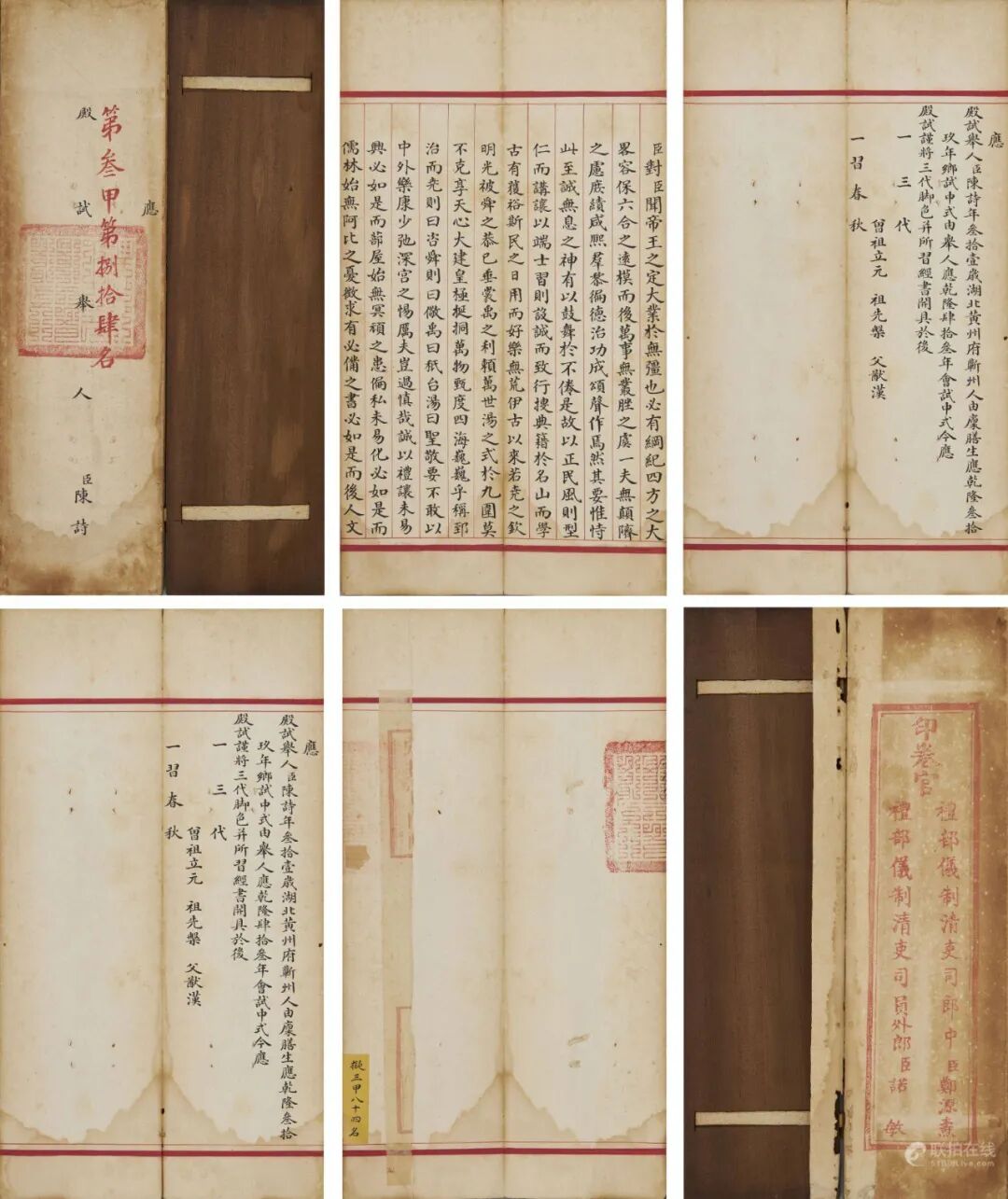 Lot 339清 陈诗 乾隆殿试卷(带前后夹板) 一册