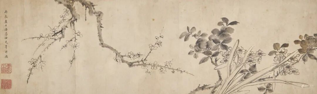 此《白梅水仙图》,笔墨全法陈白阳,高洁淡雅,洗尽铅华,毫无美人脂粉之气,或正是其人生的写照,契合其“画花不画连根土”的绘画风格,历四百年而复存,沧海遗珠,殊不易得矣。