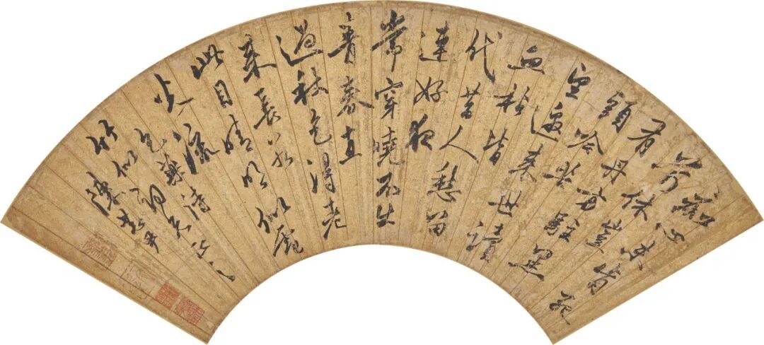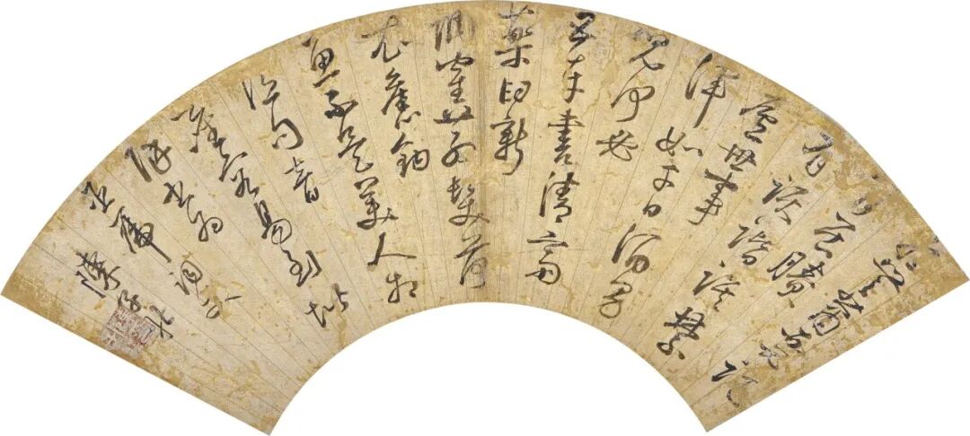 陈恭尹隶书多见,而行草书作相对较少。世传陈恭尹“修髯伟貌,气局深沉”,观此金笺扇页书法,行草相间,沉着痛快,如见其人。况广东明贤书迹留存极罕,得者当珍之。
