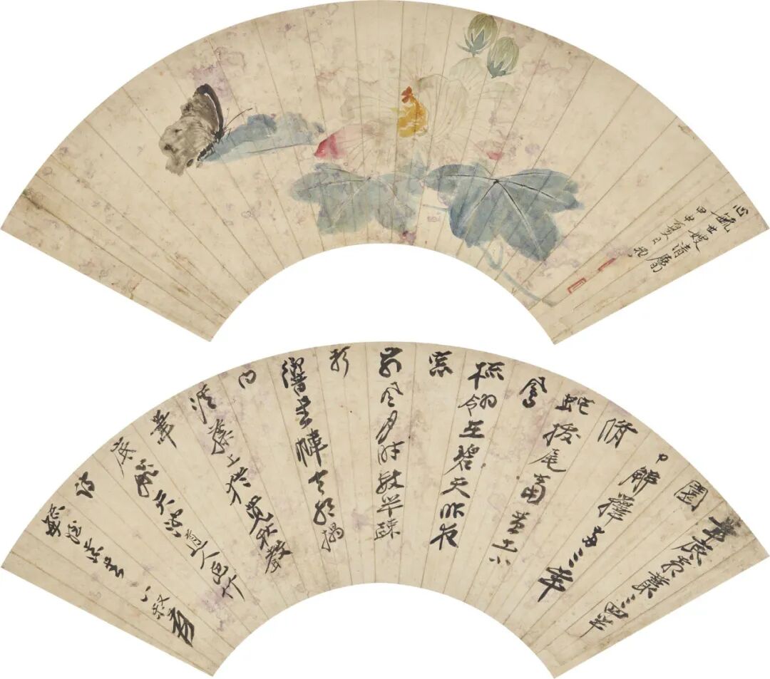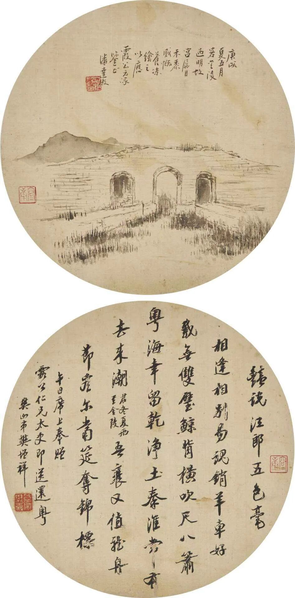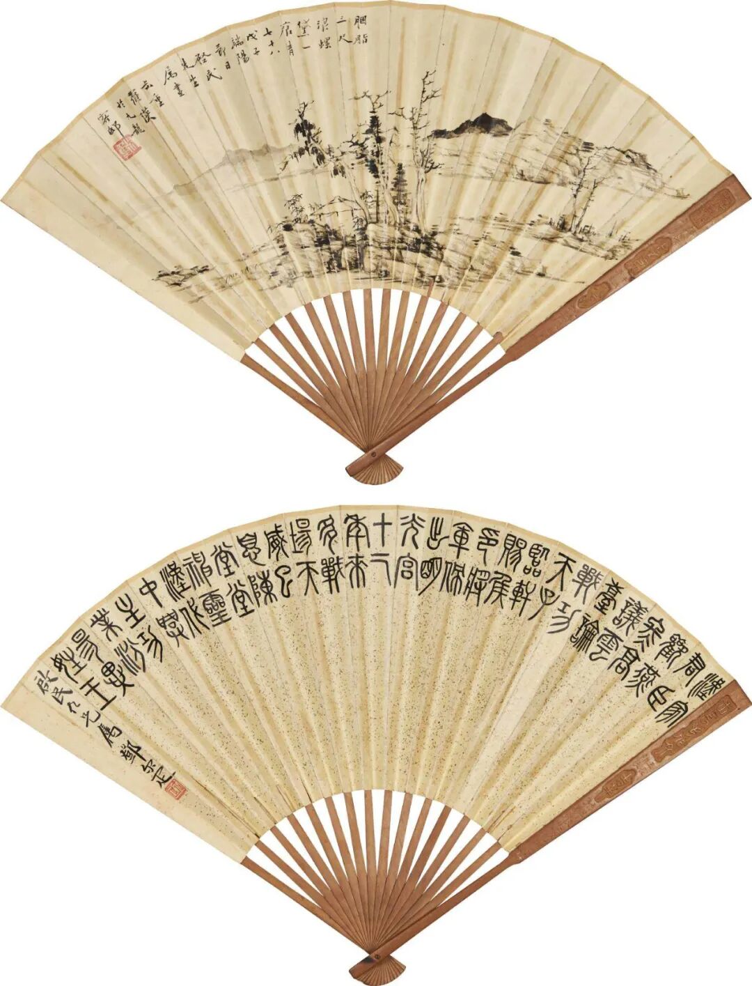 Lot 319潘达微、樊增祥 金陵明宫图、行书 团扇