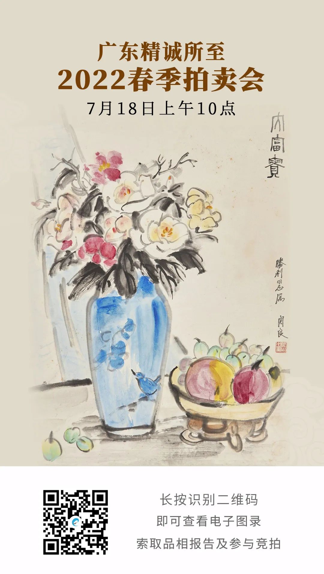 今天我们来关注一场极具岭南特色的书画艺宴——广东精诚所至『2022春季拍卖会』。本次拍卖已于今日正式启动预展,并将于7月18日在广州城市公园展览馆盛大举槌,联拍在线将全程直播,并提供实时同步竞拍技术和服务支持。