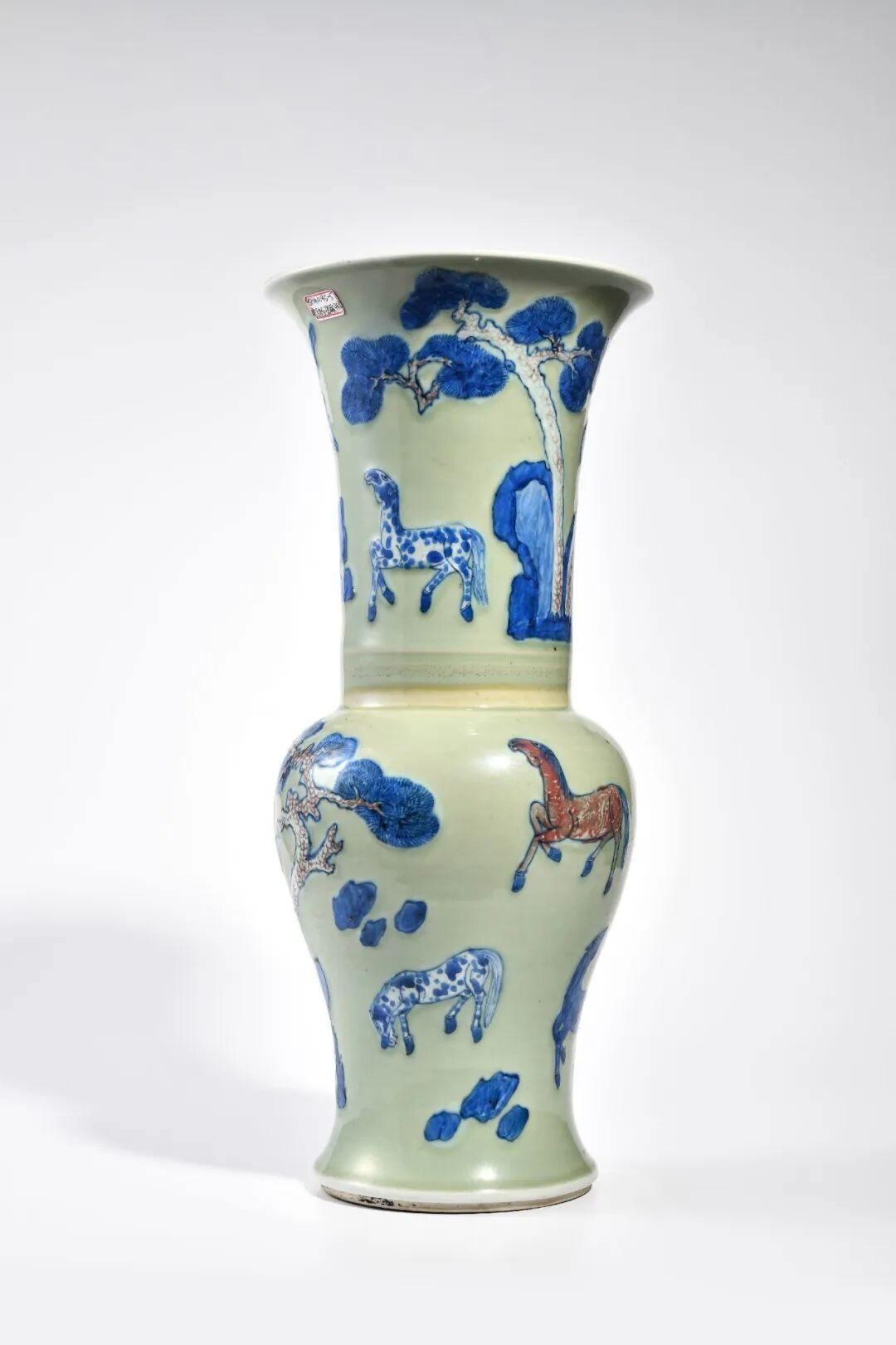 清康熙 青花釉里红骏马图花觚
