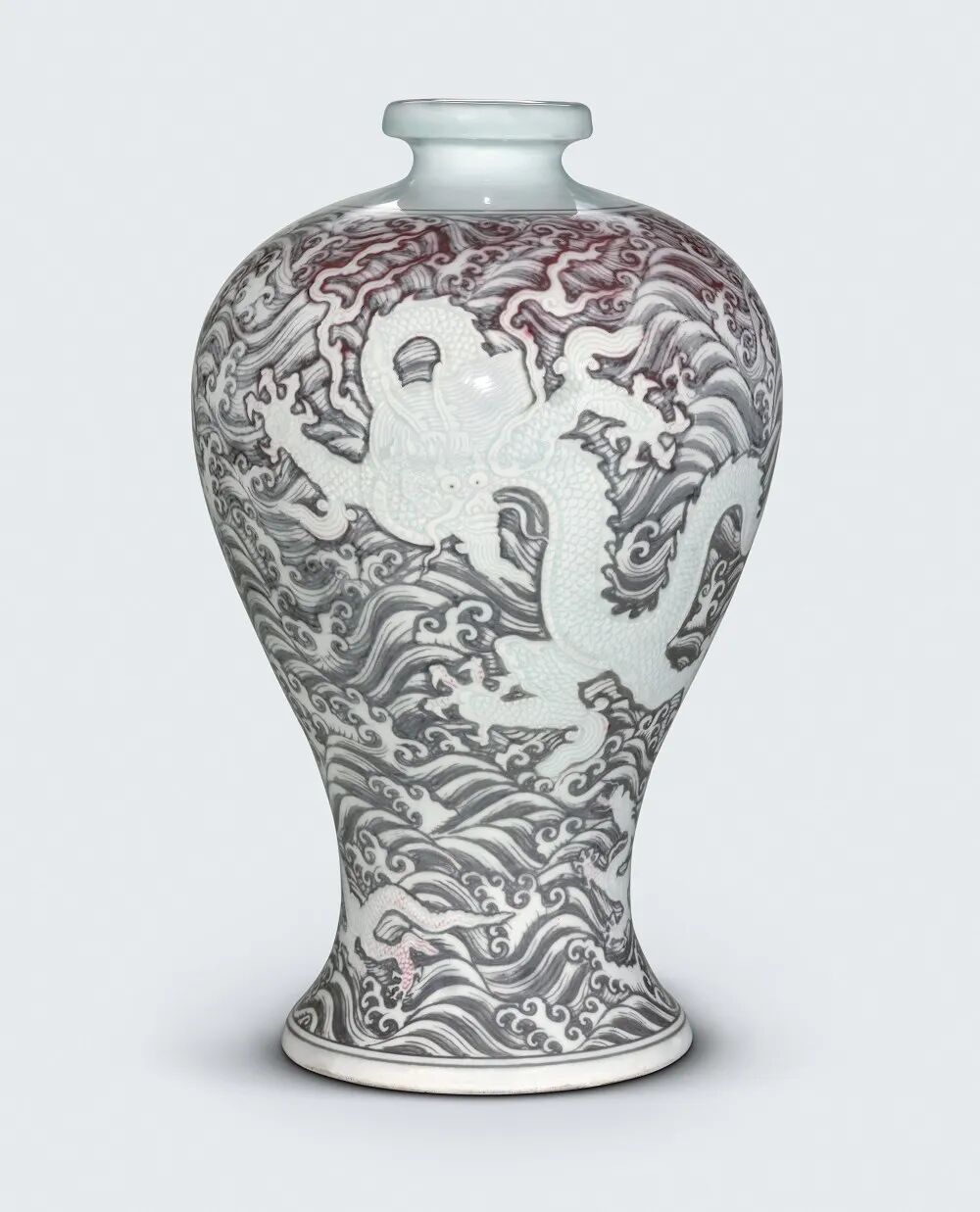 明永乐 釉里红海水锥拱苍龙教子图大梅瓶