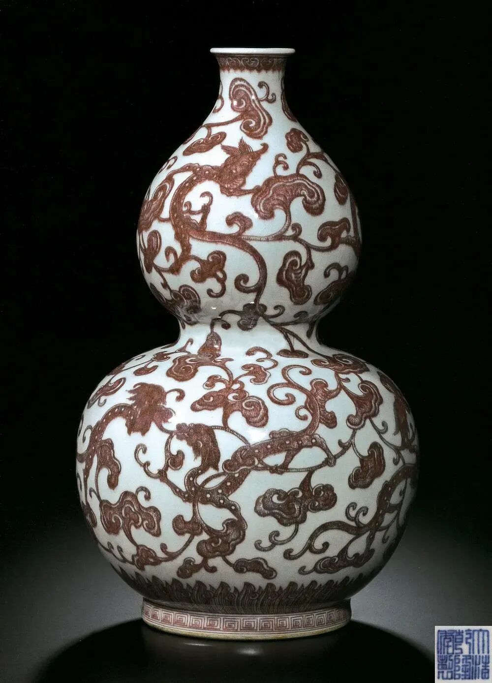清乾隆 釉里红“穿枝螭龙”图葫芦瓶