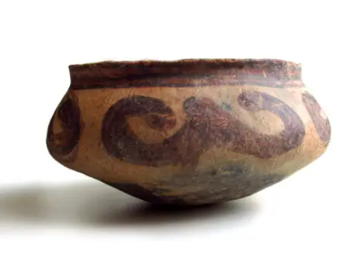 公元前六千纪初,老官台文化出现在陇山两侧的渭水流域和汉水上游,该文化的部分典型陶器口沿外侧常见一条红彩宽带。