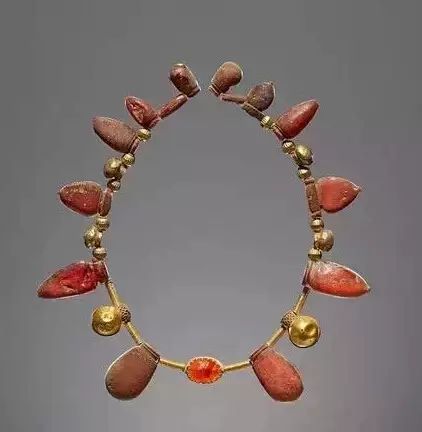 在一座古代凯尔特贵妇墓穴内发现的黄金首饰。这是一座木椁墓,里面的骸骨距今2600年。这名贵妇逝世时的年龄在30岁到40岁之间,她出身高贵,陪葬品包含一系列做工精良的珠宝首饰,例如镶嵌着珍珠的黄金项圈。开棺时,考古人员发现她的腰上佩带着琥珀首饰。古墓开掘负责人表明,这个墓葬的发现证实霍伊内堡是最前期的凯尔特人艺术与文化中心![]()