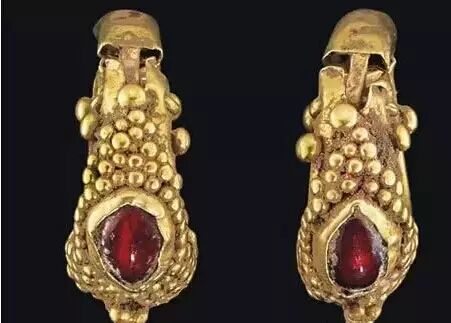 血珀金耳环,帕提亚,约公元前2-1世纪