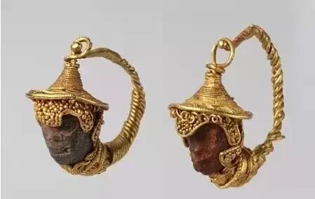 人脸蜜蜡原石金耳环,伊特鲁立亚,约公元前2-1世纪