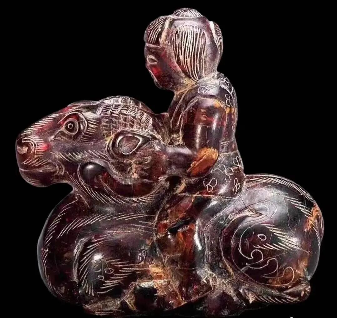 我国人敬重标志健康长寿的松树,自古以来对琥珀就特别喜欢。汉成帝的皇后赵飞燕有琥珀枕,能够在安睡时吸取芳香;陈后主花费千金为宠妃置办琥珀簪。在故宫博物院中也珍藏着很多宝贵的琥珀首饰和由琥珀雕刻而成的精巧鼻烟壶。 我国早在新石器时代的遗址中就出土了琥珀雕刻的装饰物,尔后历经商周秦汉,它与古代玉器的开展形影相随。在湖南衡阳苗圃出土的秦汉期间的椭圆形金珠,珠外用金丝构成精巧的斑纹,一起还出土了水晶、玛瑙和用琥珀制造的狮、兔、鸟等雕刻件。 清王朝对琥珀特别喜欢,它们被制成朝珠和鼻烟壶供贵族和大官享受。在清朝与俄罗斯的交际交游中,沙皇从前把琥珀成品作为礼物赠送给我国皇帝。例如:1693年伊杰斯来华带给康熙皇帝的礼物是“精制技形大吊灯一盏、琥珀大烛台一对,琥珀瓶一只、琥珀框镜子一面”等。 明代南京沐睿墓出土瑶池春熟”金锁琥珀挂饰,虽然是好几百年了,这色彩仍是这么美丽,是血珀吗?![]()