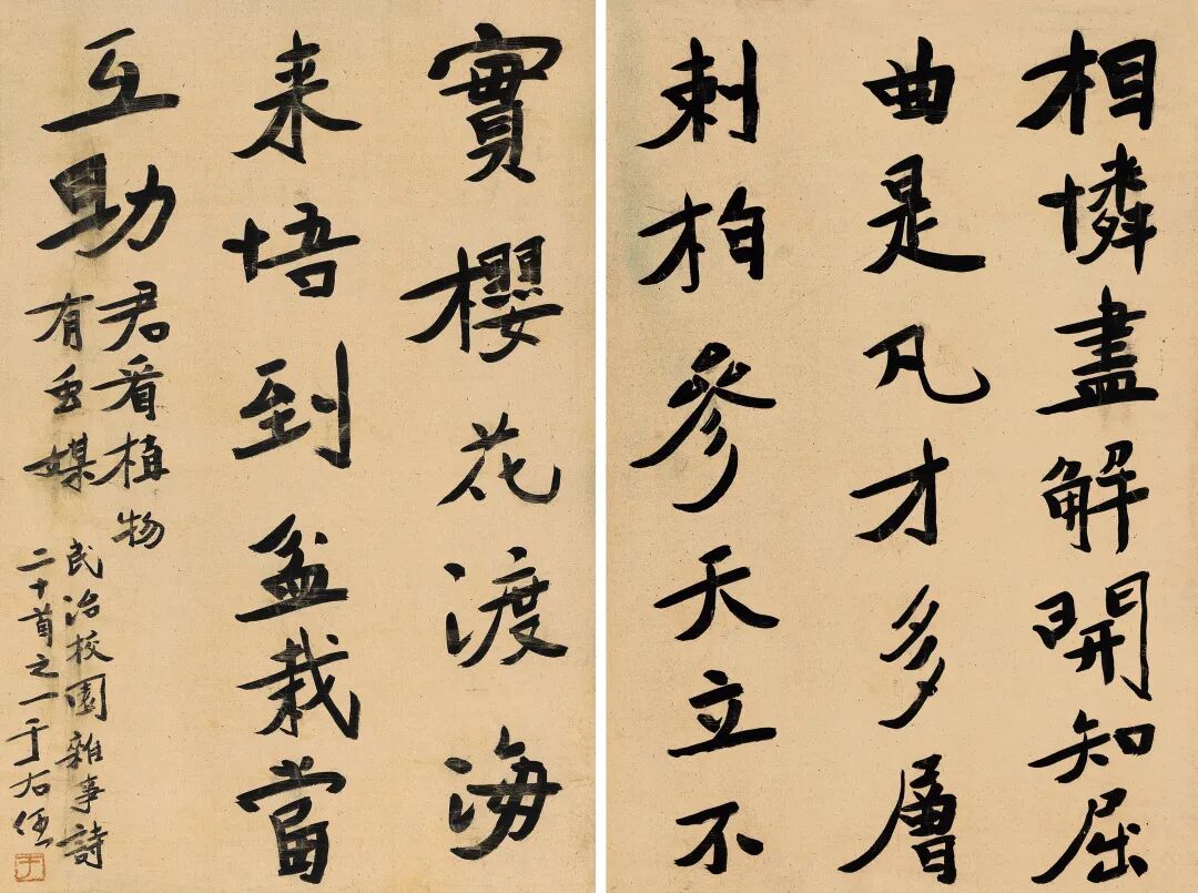 款识:君看植物有虫媒。民治校园杂事诗二十首之一,于右任。