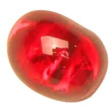 长2.02厘米,宽1.65厘米,厚0.55厘米,重8.1克。呈圆形,中间有一圆形凹陷,颜色是鲜艳的亮红色,在光折射下呈现深浅结晶变化。