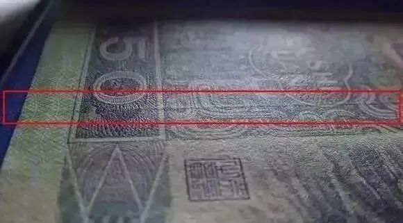 所以,造假者需要清除9050的这两个防伪标识。抽取金属线并不困难,但是抽取之后,会在钱币原有位置造成轻微的凸起,对着暗光可以看到痕迹,用手摸一下背面,有些也能感觉到有凹凸感。