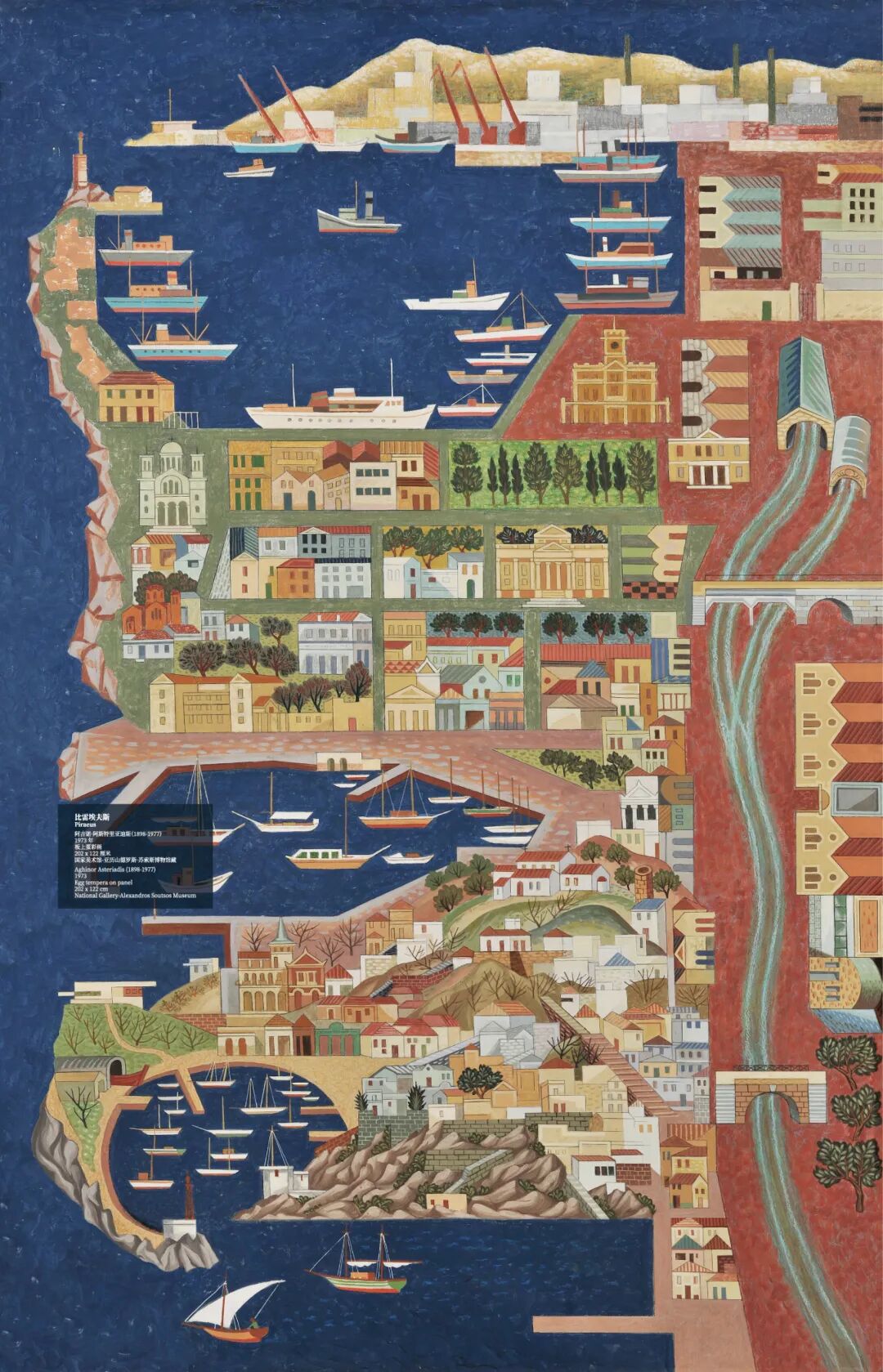比雷埃夫斯港距离雅典9公里,是希腊最大的港口,也是地中海最大的港口之一,在希腊的传奇历史和当代生活中发挥着重要作用。展览中两件描绘比雷埃夫斯港的作品分别呈现了港口在社会经济中的面向,以及在日常生活中的侧影。