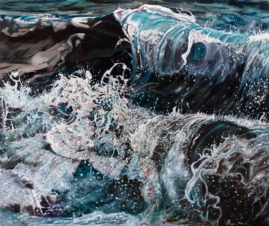 展览第二部分“β 现当代希腊艺术中的海洋”以现当代艺术呈现海洋与希腊文化之间历久弥新的象征关系,是本次展览的重头戏。“海之生灵”“逐浪远行”“大海深处”三个板块串联起34件展品,形式涉及油画、摄影、影像、装置、陶瓷艺术、人工智能等。希腊现当代艺术家试图打破传统的界限,从海洋的壮丽景致中汲取灵感,并将其作为人类潜意识的隐喻,通过更为抽象和含蓄的方式对其进行描绘。