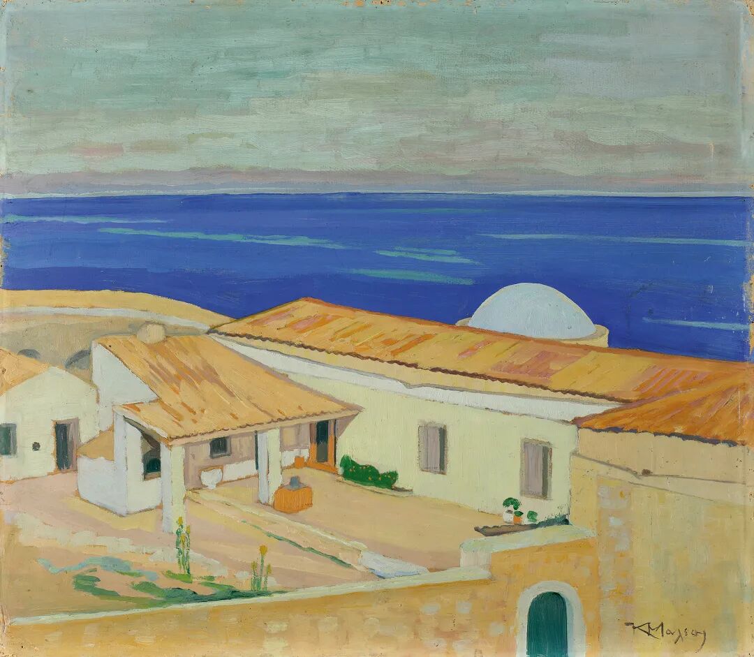 康斯坦丁诺斯·马利亚斯是希腊绘画的一名革新者,他汲取了纳比派、野兽派、后印象派的精髓,也曾近距离接触过东方的风景画,从而发展出个人风格。艺术家在描绘莫奈姆瓦夏城镇的局部景色时,通过风格化的基调、清晰的平面轮廓,以及强烈的纯色来表现无处不在的光线,将这一日常希腊景观提升到象征意义。