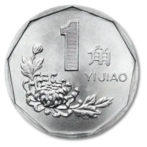 菊花1角唯一一套1角比5角直径更大的流通币,币面厚度也比梅花5角、牡丹1元厚的多,目前已经退出流通。