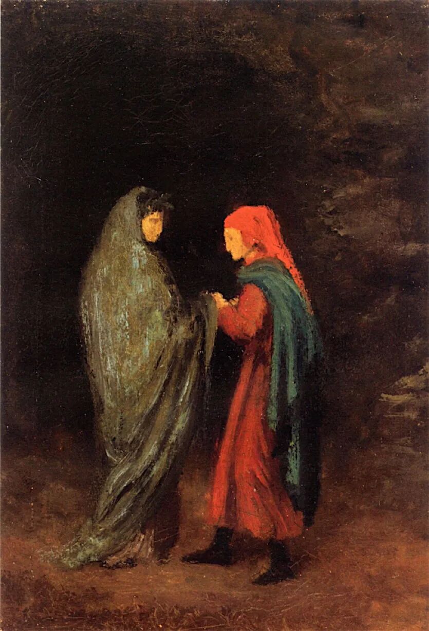 静笃君按:但丁·阿利吉耶里的《喜剧》从这里开始。(但丁语)意大利民族最伟大的诗人但丁(Dante Alighieri,1265-1321)是“中世纪的最后一位诗人”,也是“文艺复兴的第一位诗人”。《神曲》(Divina Commedia)是但丁在被流放期间所作长诗。诗中,35岁的诗人但丁在古罗马诗人维吉尔的引领之下开始了一次精神蜕变、灵魂救赎之旅。身处中世纪晚期欧洲社会巨变中的但丁感受到了时代的彷徨,他用诗歌来表达这种迷失感。《神曲》就从但丁迷失于暗林开始,当他试图穿越阴霾走出暗林时,却被分别象征着荒淫、傲慢和贪婪的花豹、雄狮和母狼三头猛兽挡住了去路。正当但丁万分捉急之际,古罗马诗人维吉尔的灵魂受但丁的女神贝缇丽彩之托前来解救,帮助但丁脱离了险境。▲水彩画《地狱之门上的铭文》(1824-1827)在维吉尔的带领之下,但丁进入地狱游历。地狱之门的门楣之上铭刻着:“由我进入哀城,由我进入极苦,由我进入万劫不复……走入我的人们,要放弃所有的希望幻想!”维吉尔告诉但丁,按照天国的三位圣女——玛利亚、卢奇亚、贝缇丽彩——的嘱托,但丁必须先经过地狱,方可进入炼狱和天堂。敢于进入地狱意味着你肯舍弃人世间的傲慢,在地狱中接受死亡的磨砺。![]()