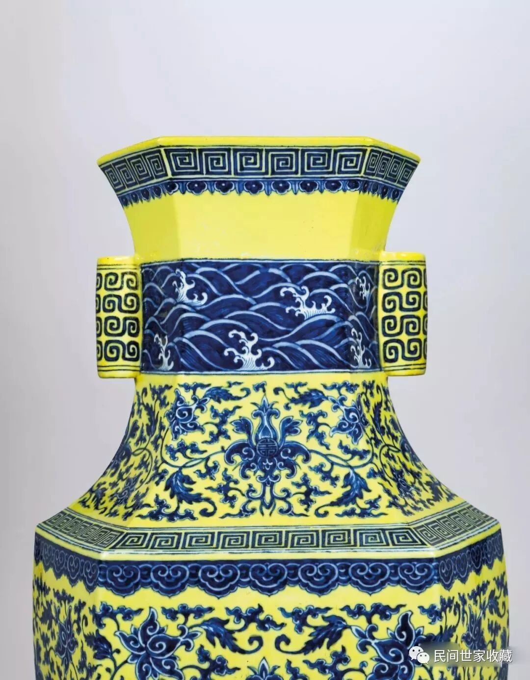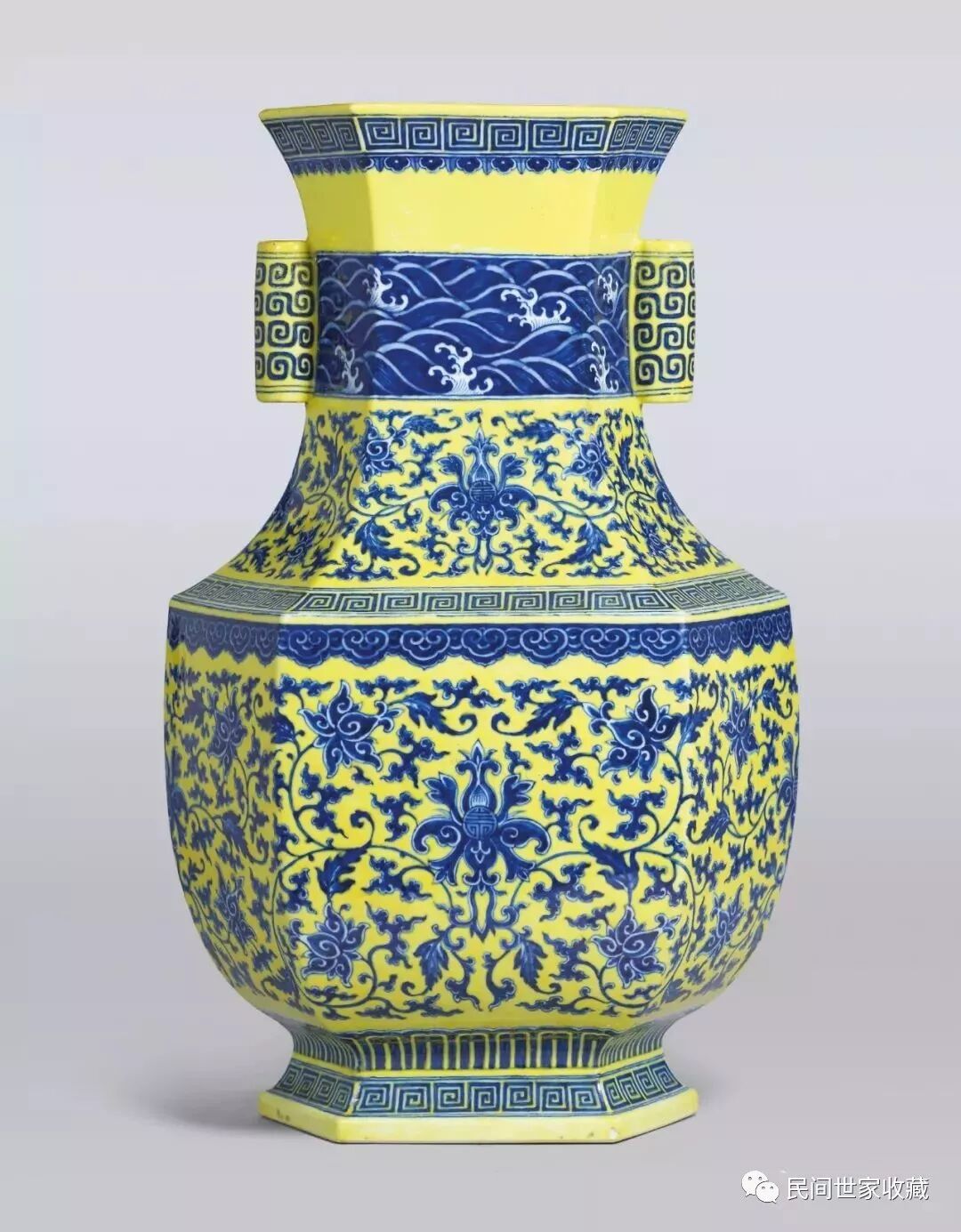 lot:2909 清乾隆 黄地青花缠枝莲纹六方壶成交总额 HKD 8,525,000