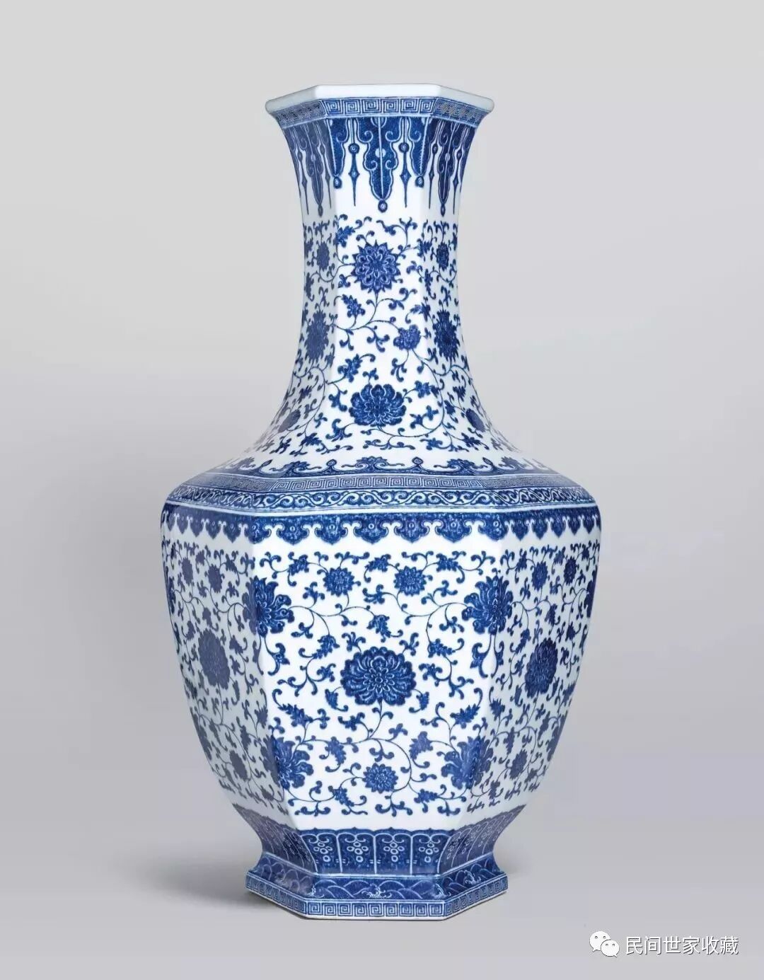lot:2911 清乾隆 青花缠枝莲纹六方瓶成交总额 HKD 5,525,000