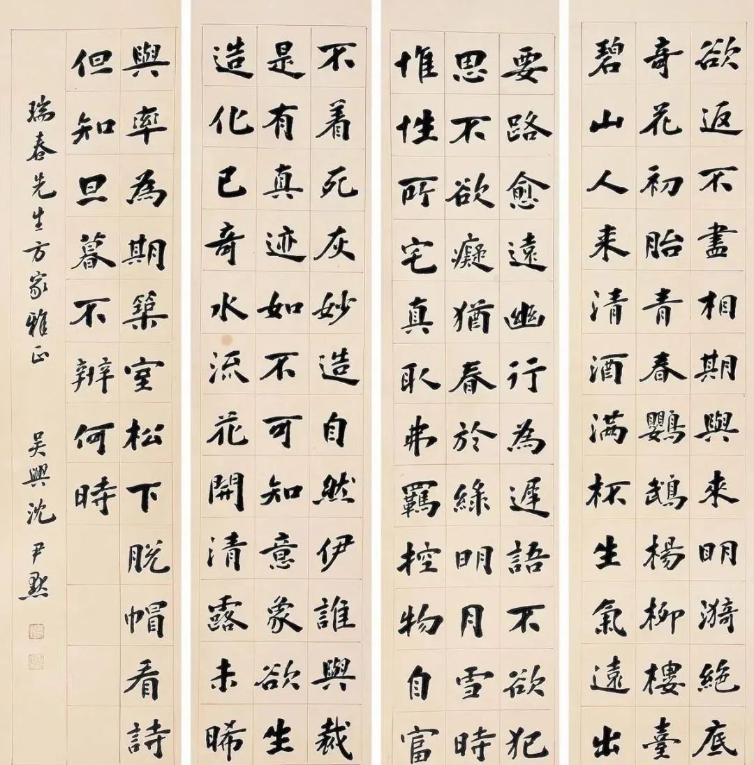 沈尹默楷书七言联,153×33cm×2,常州博物馆藏。