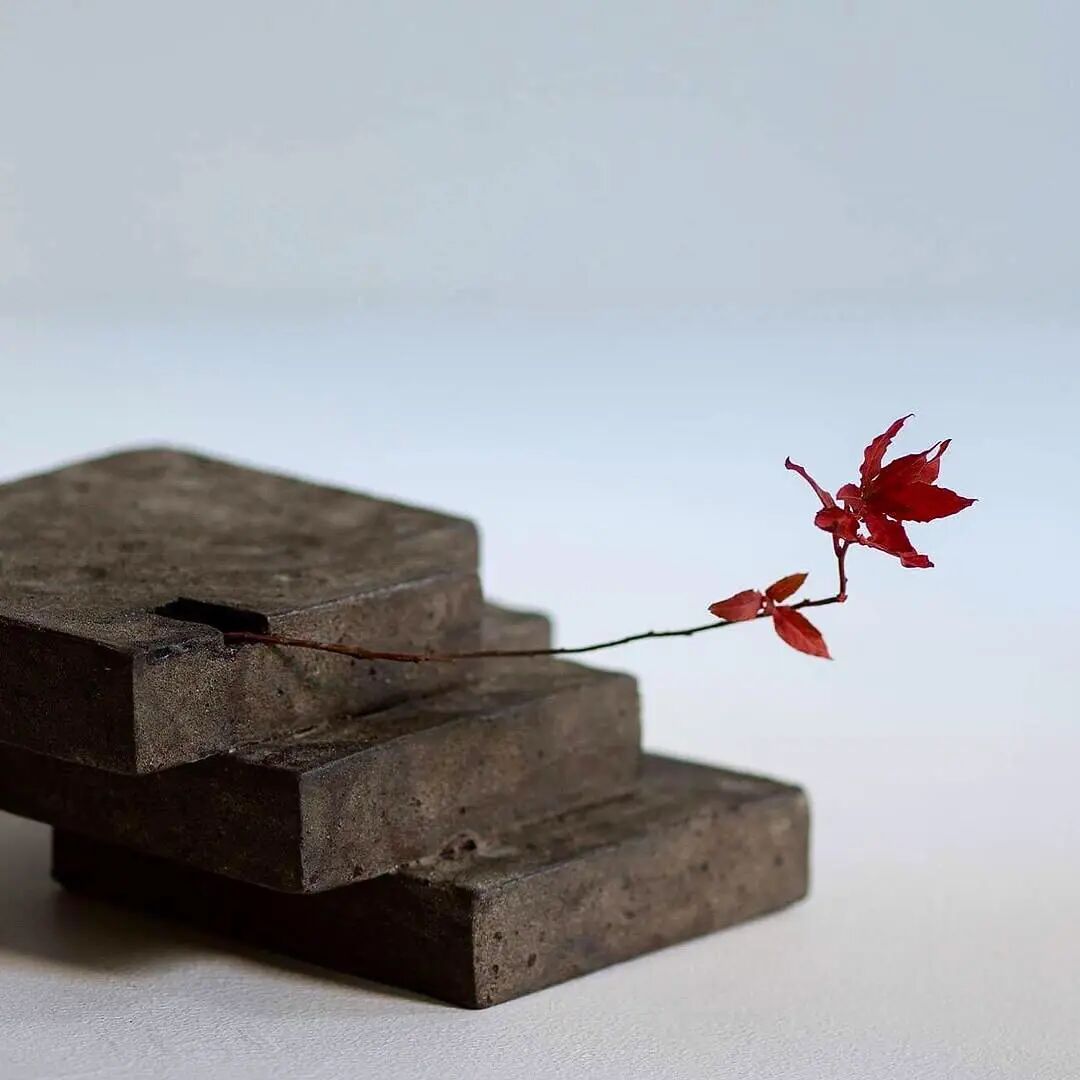 近些年创作,竹内纮三也有将玻璃、金属、木材和漆器加入白瓷的创作中,他还是在尝试更多极限的表达,而且除了白色的“现代遗迹”,他还有黑色楼宇的花器造型,那些花儿像是在废弃的楼宇中盛开一般,让“现代遗迹”依然充满生机。