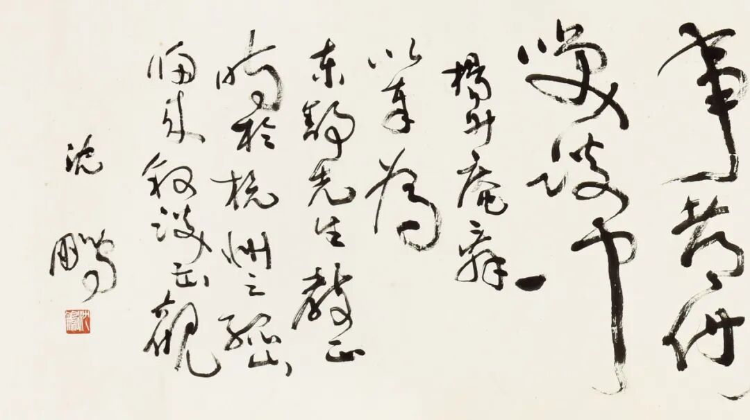 题识:杨升庵辞以奉为东舒先生教正。时于杭州之孤山归来,叙谈甚欢,沈鹏。