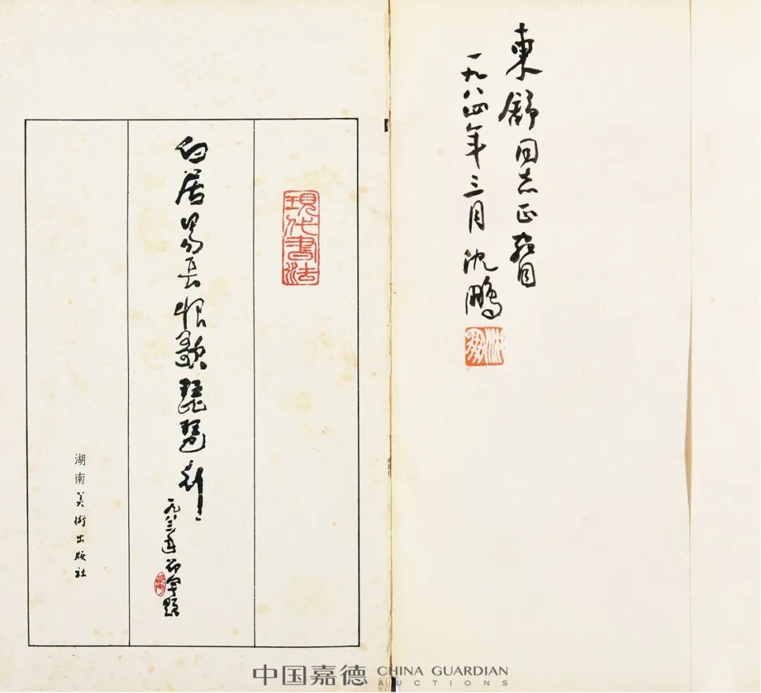 此件内含:1、沈鹏题赠姜东舒书籍《沈鹏书长恨歌琵琶行》1册,扉页题有“东舒同志正腕,一九八四年三月,沈鹏”。