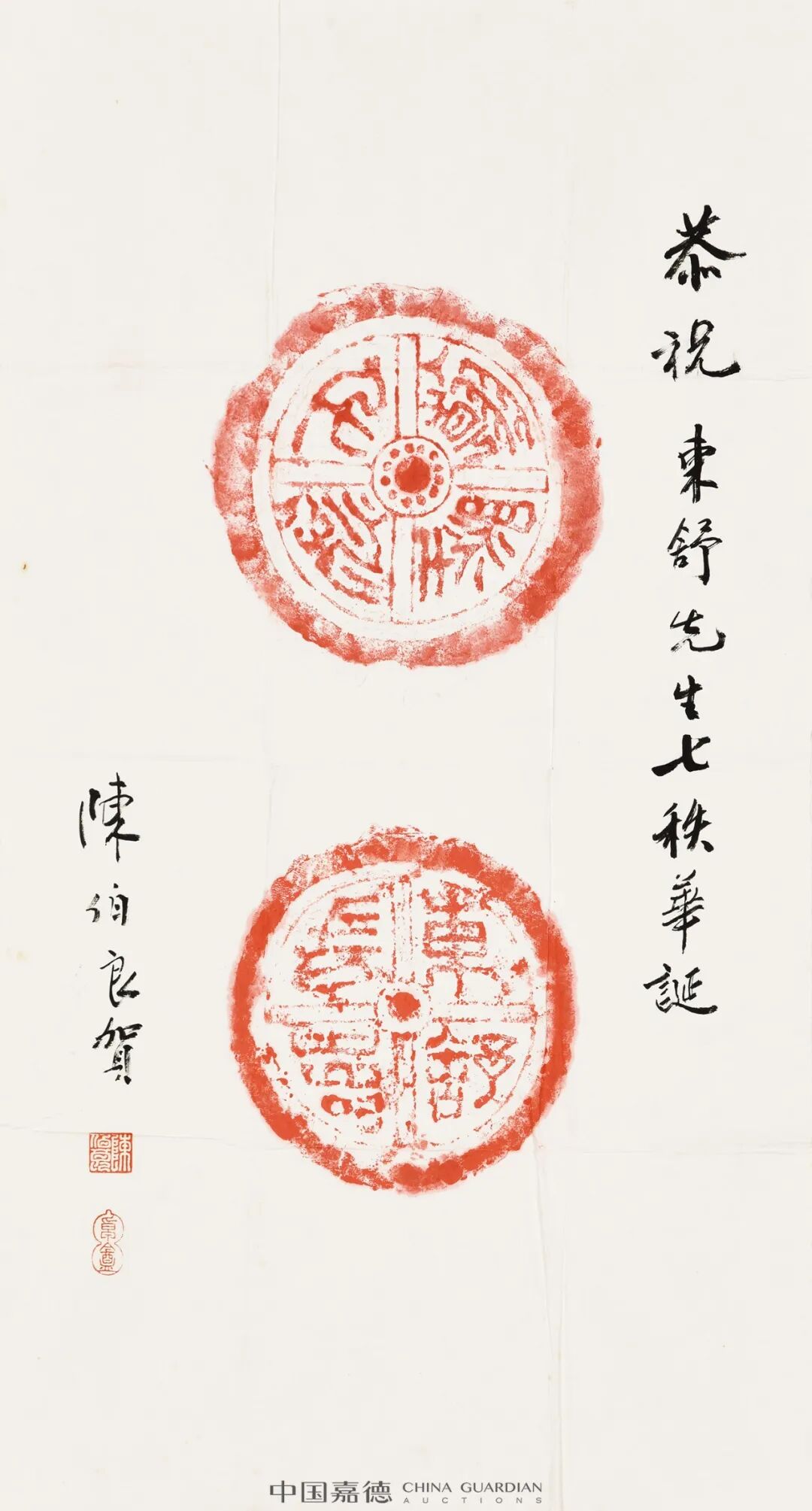 题识:1、恭祝东舒先生七秩华诞,陈伯良贺。