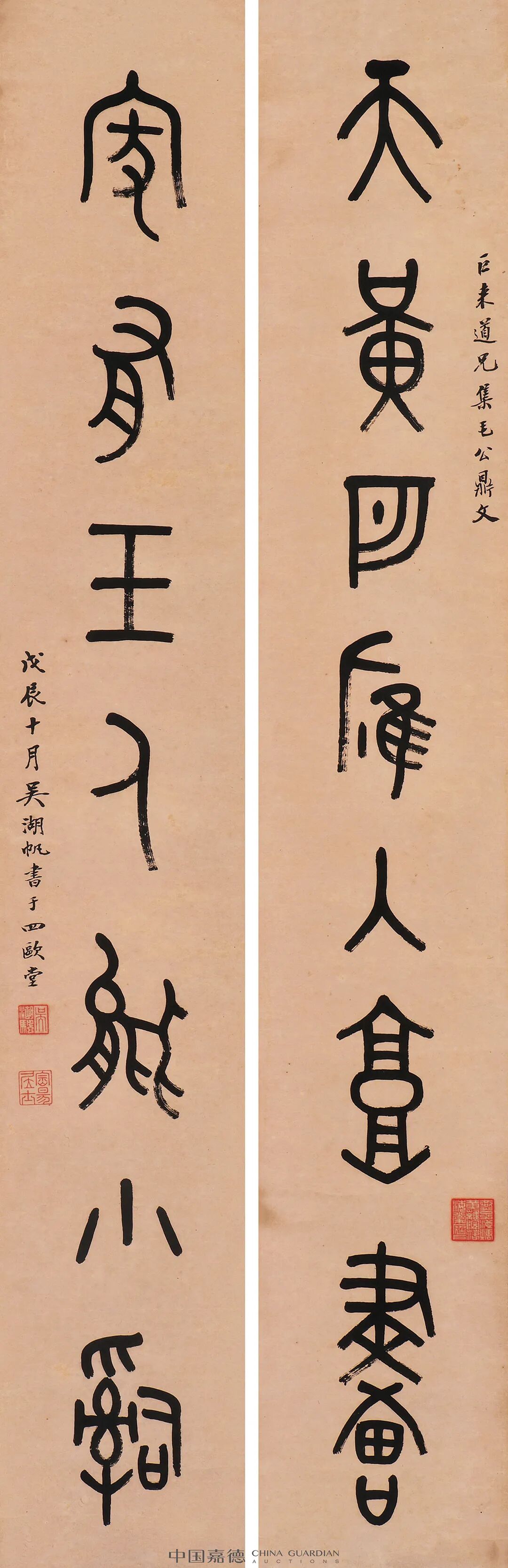 款识:巨来道兄集毛公鼎文,戊辰十月,吴湖帆书于四欧堂。