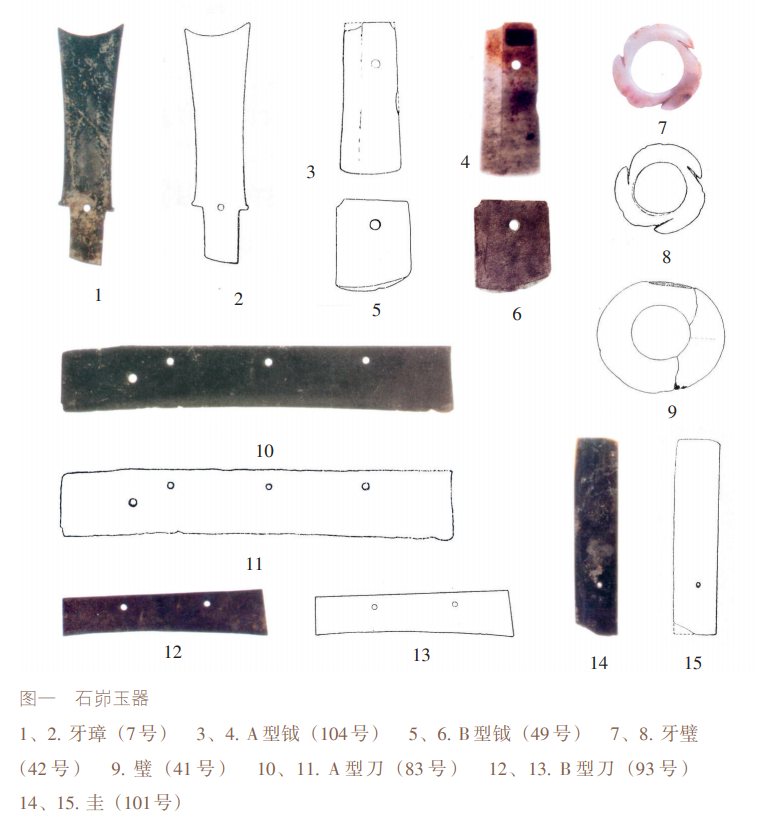 石峁龙山文化玉器中,数量最多的是牙璋、玉钺和玉刀,其次为璧环、玉圭、玉琮等 [6]。(图一)