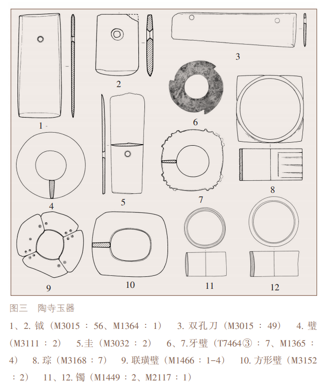 琮在陶寺遗址数量也不多,形制或为典型的龙山式样(图三:8),有的进一步简化为方筒或圆筒形器。