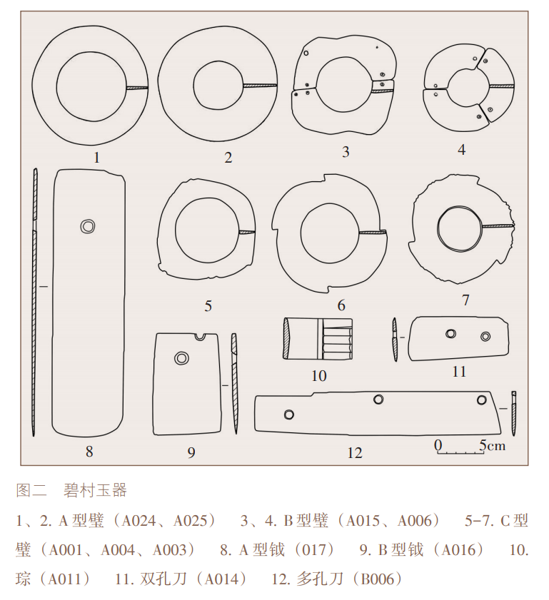 目前公布的碧村玉器主要有六类,即璧环、玉钺、玉刀、玉琮、玉圭和玉璜[9],其中以璧环类玉器数量较多。(图二)