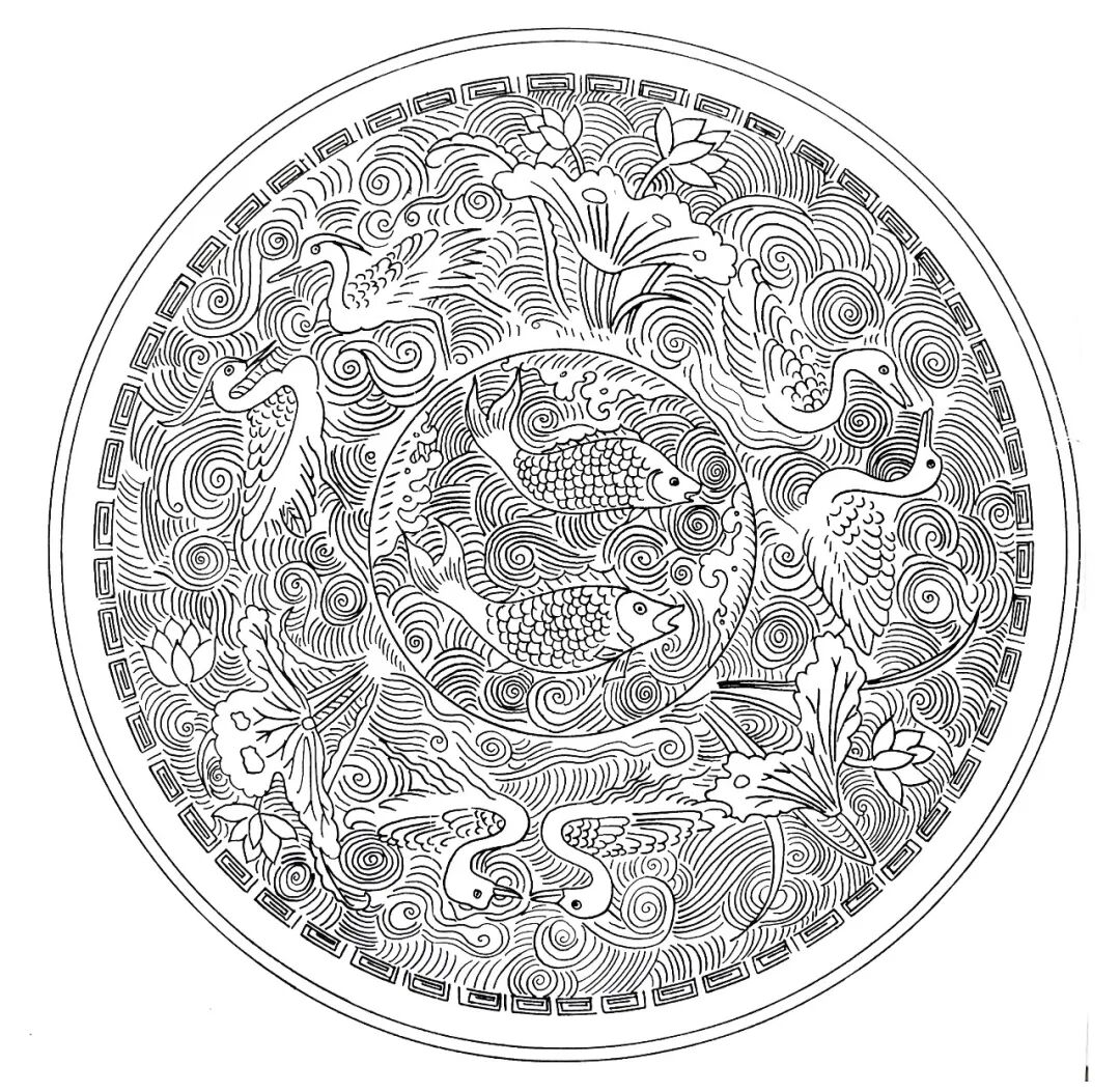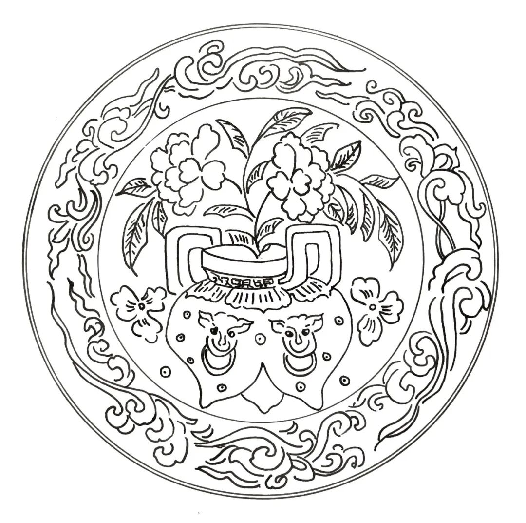 其中一类特殊的装饰纹样名为“博古纹”,博古即指古代器物,由来《宜和博古图》一书而得名。北宋大观年间,宋徽宗命人编绘《宣和博古图》一书,全书共三十卷。书中收录了宜和殿所藏商至唐代铜器800余件,因集宋代所藏前朝青铜器之大成,故名博古。后来,博古一词的含义有所扩大井加以引申,凡是在工艺品上装饰鼎、尊、彝、瓷瓶、玉件、杂宝、盆景、琴棋书画等题材以及添加蔬果作为点缀的纹样,皆以博古名之,寓意清雅高洁。