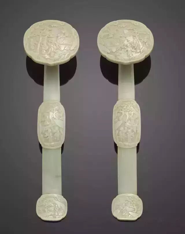 邦瀚斯旧金山「中国艺术珍品」Lot 8051 清或民国 青玉如意柄一对