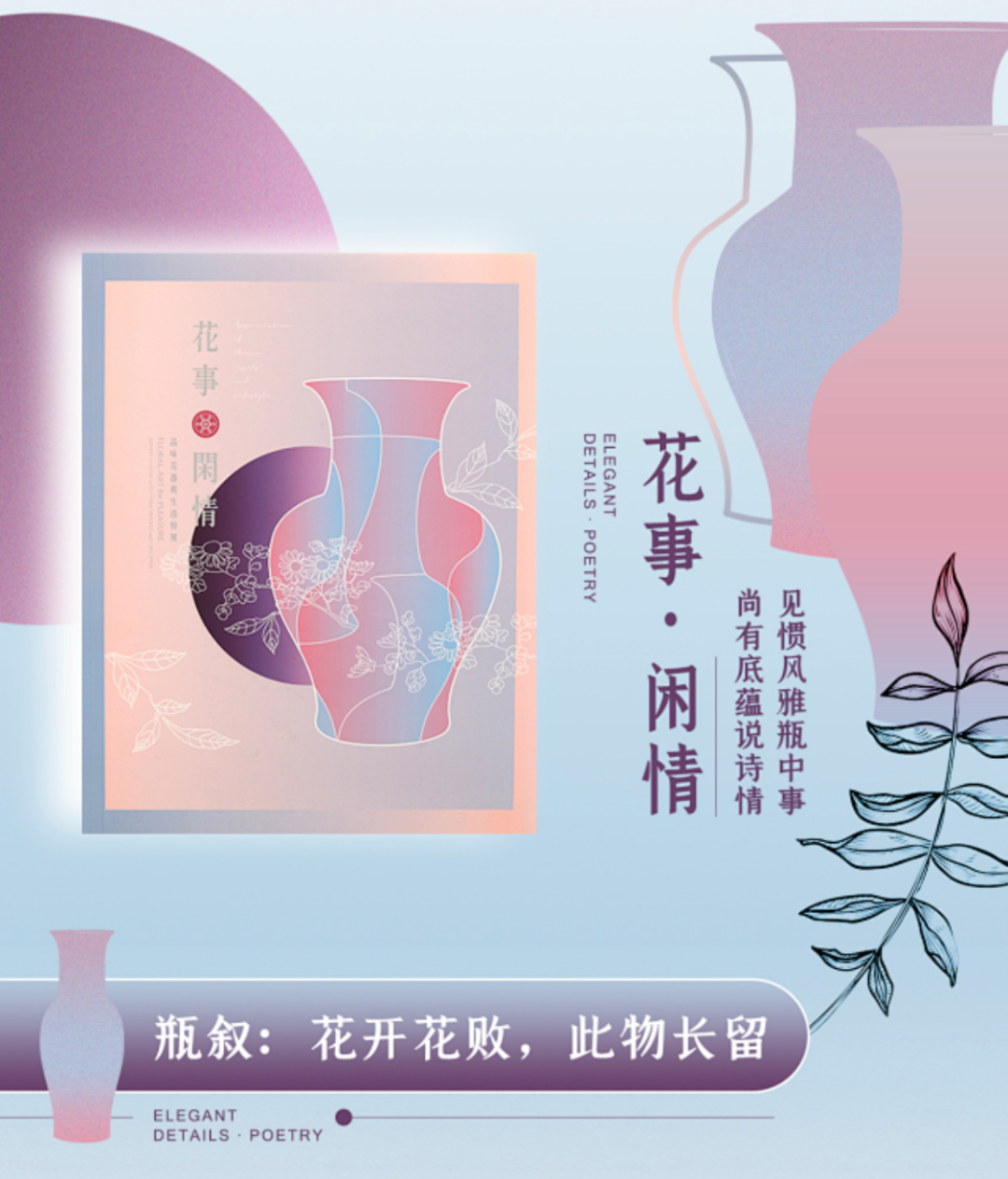 这本图录是以“花瓶”与其在古人插花中的作用、以及生活中的场景应用为线索展开的。