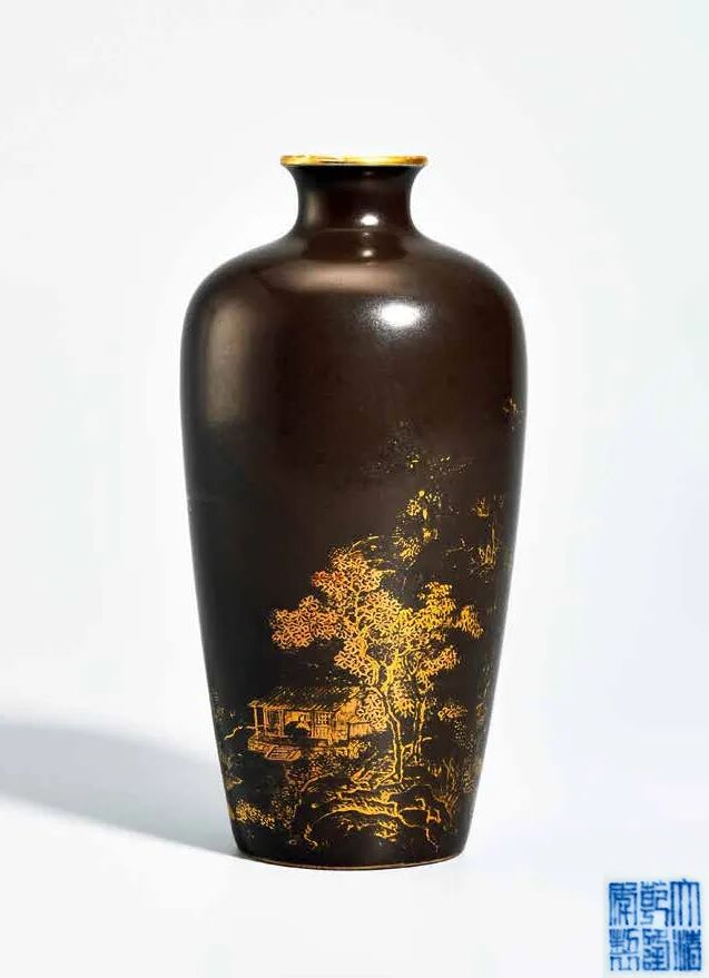 清乾隆 唐英制烏金釉黑地描金山水紋萊菔尊