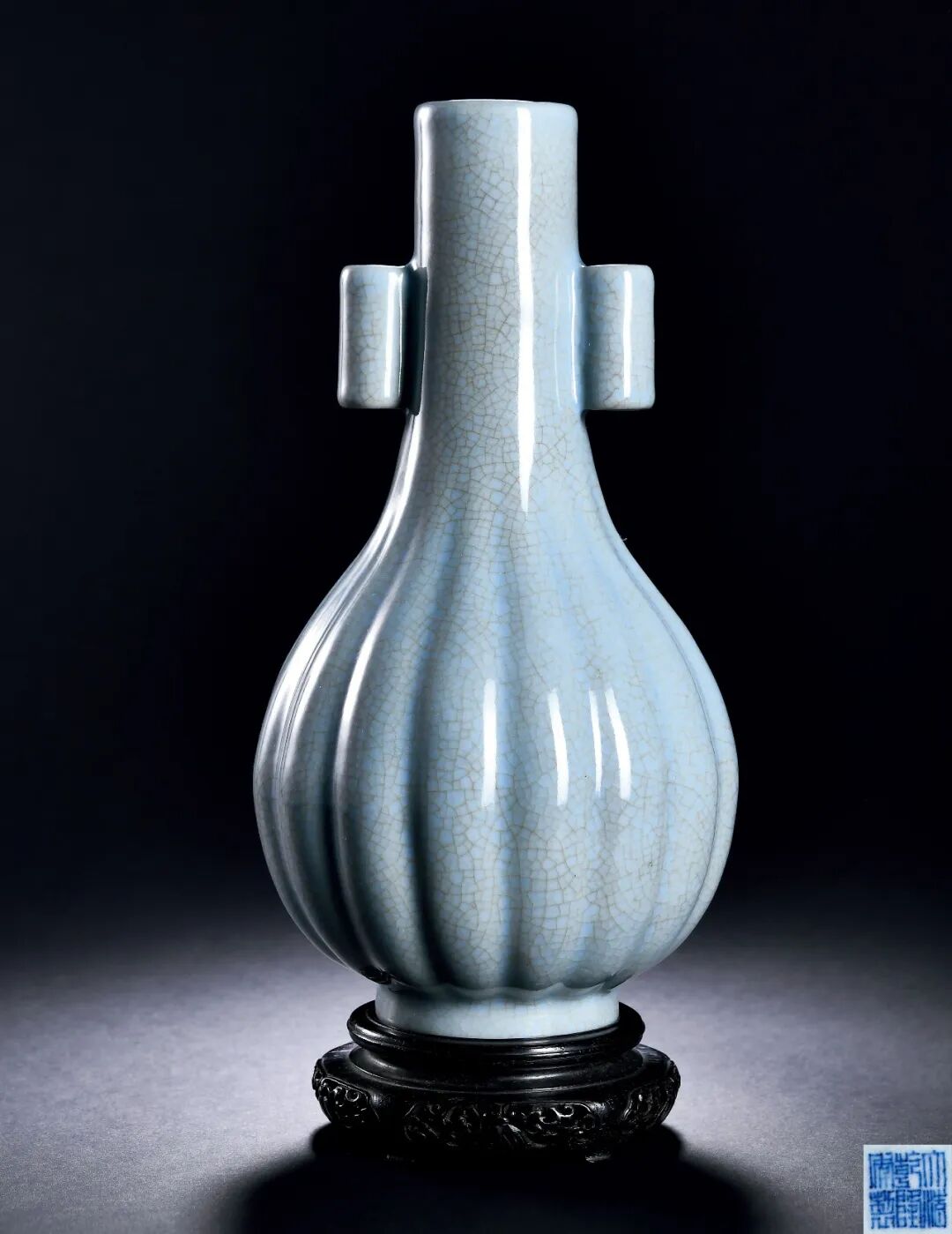 清乾隆 仿汝釉瓜棱贯耳瓶